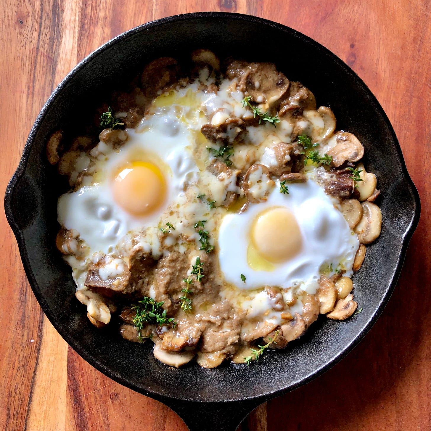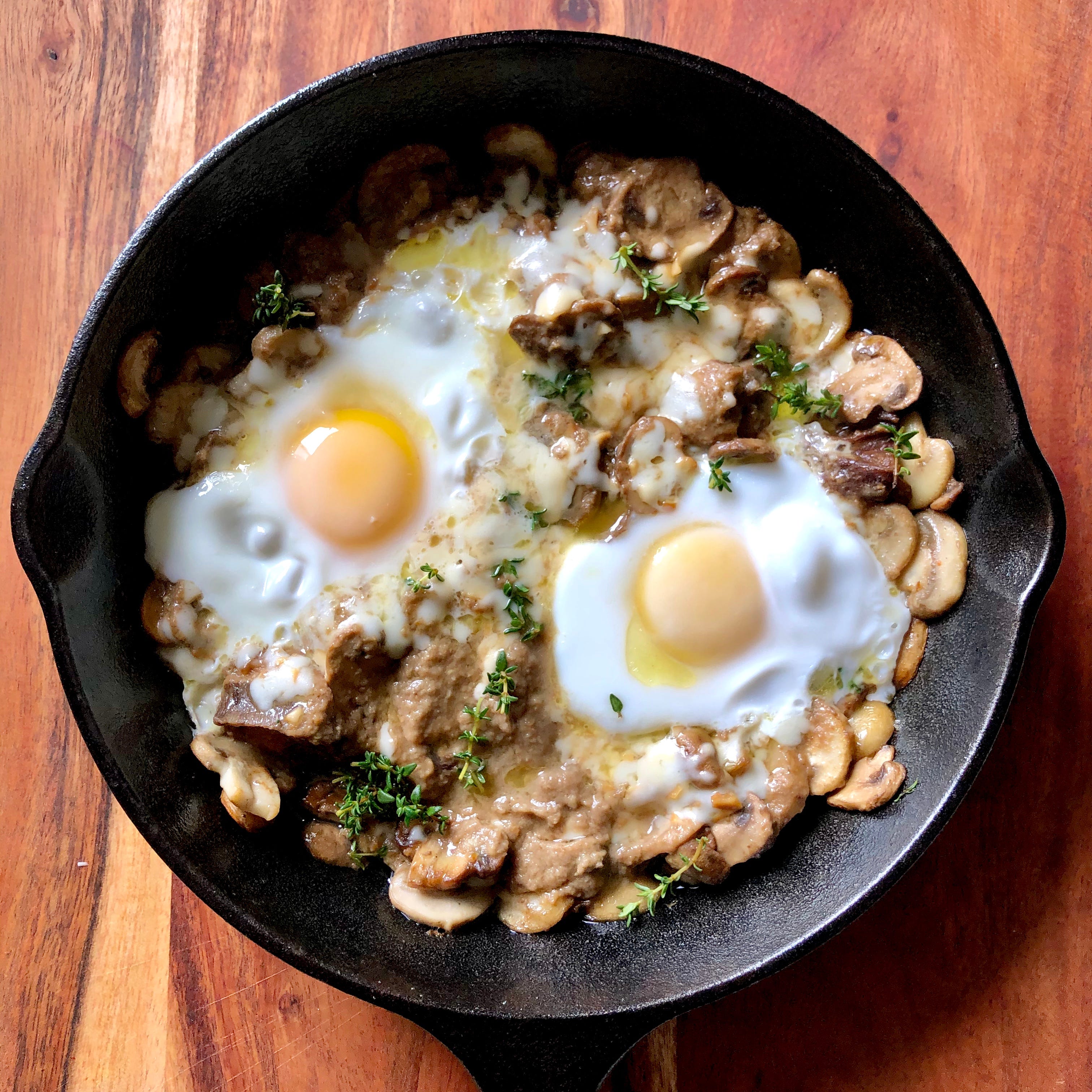 Oppure prepari dei funghi, o funghi e patate, in padella. Devi solo fare spazio e cucinare delle uova!