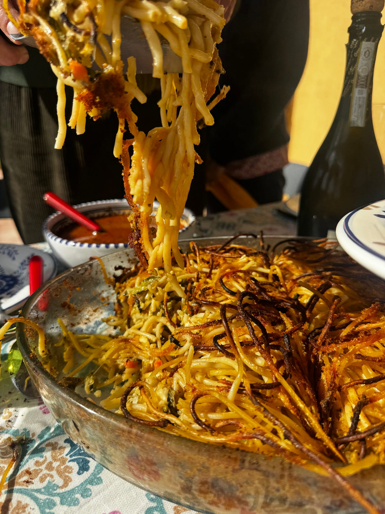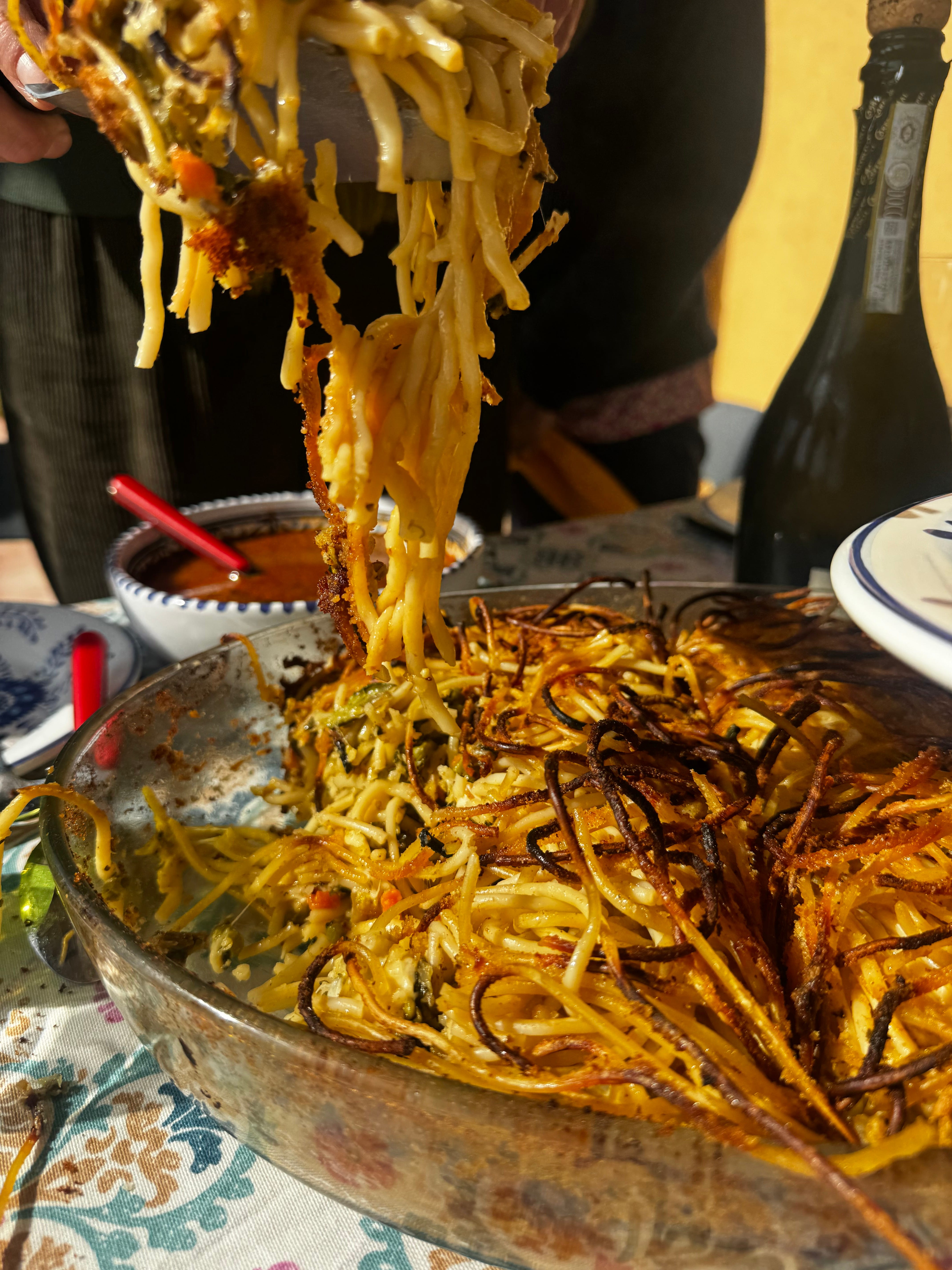 Questo ad esempio un buon piatto di spaghetti con carciofi e formaggi, in forno per fare una buona crosticina, ideale per un pranzo dove ognuno porta qualcosa, come successo quando ai primi di marzo sono stata in Sicilia ospite da amici con casa vista mare, in una domenica soleggiata e piena di allegria.