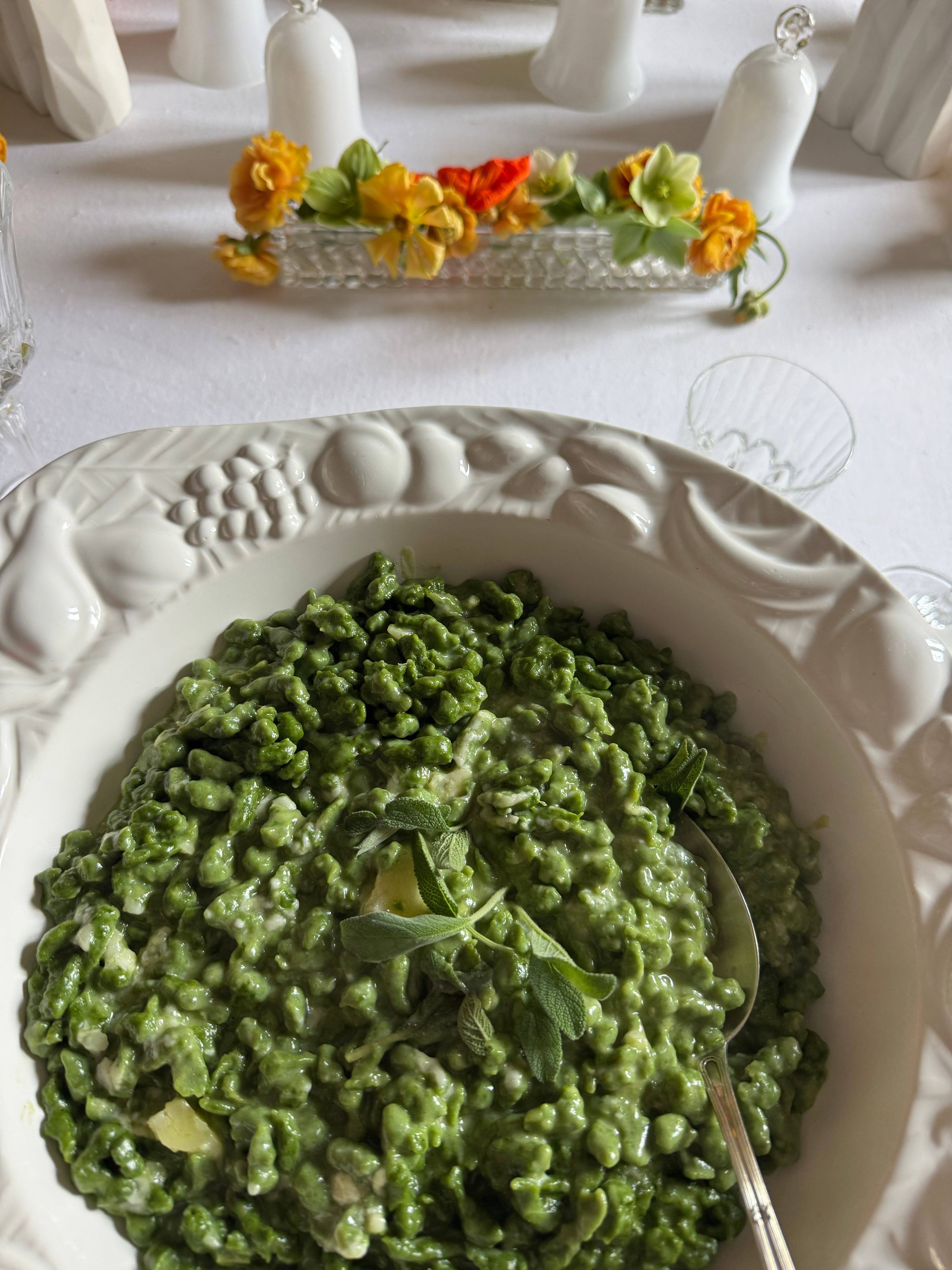 Ultimamente invece ho preparato degli gnocchetti tirolesi (di solito a base di spinaci), con erbe spontanee e aggiunto tanto pecorino poco stagionato, grattugiato. Unione sempre perfetta.