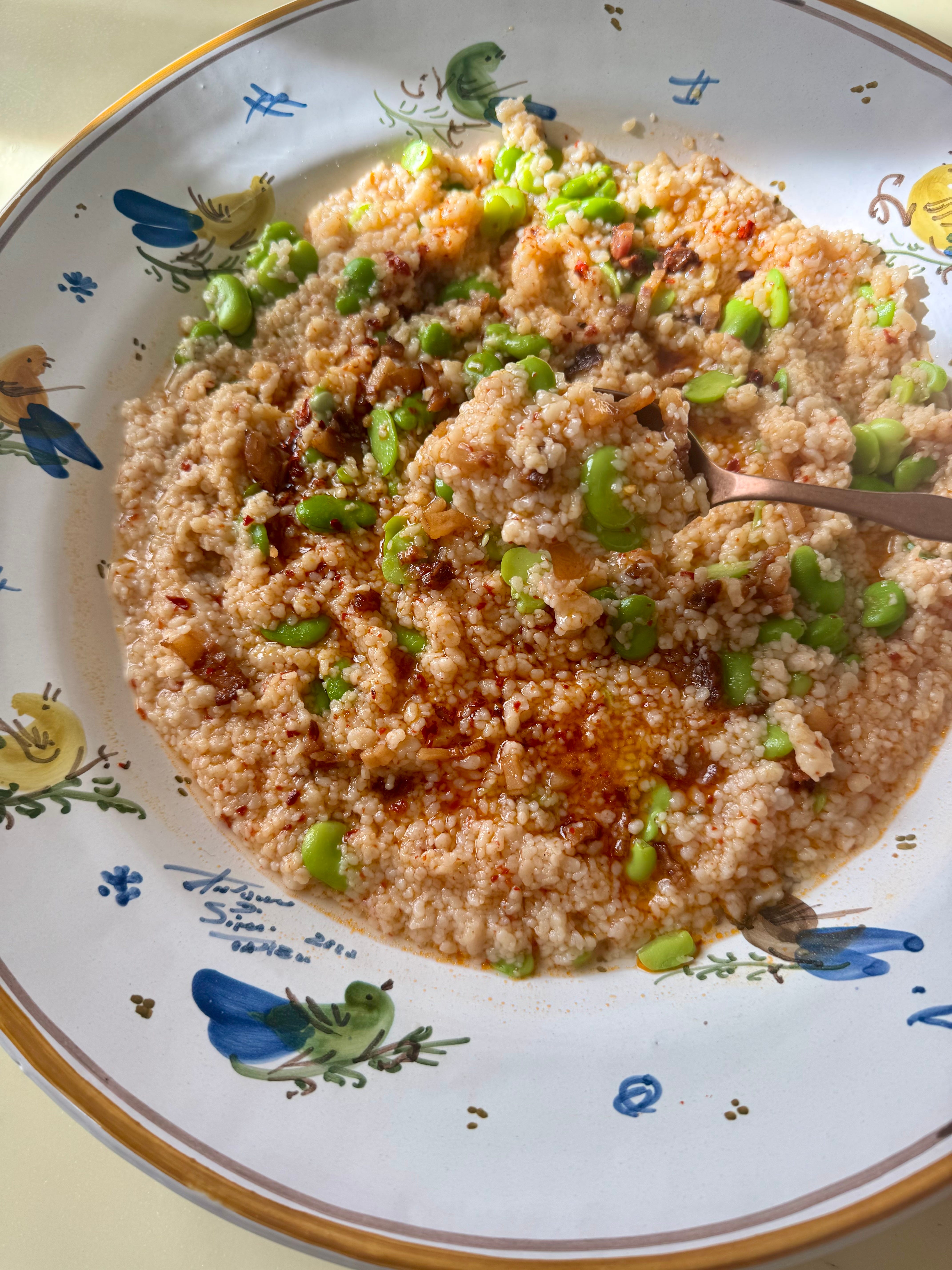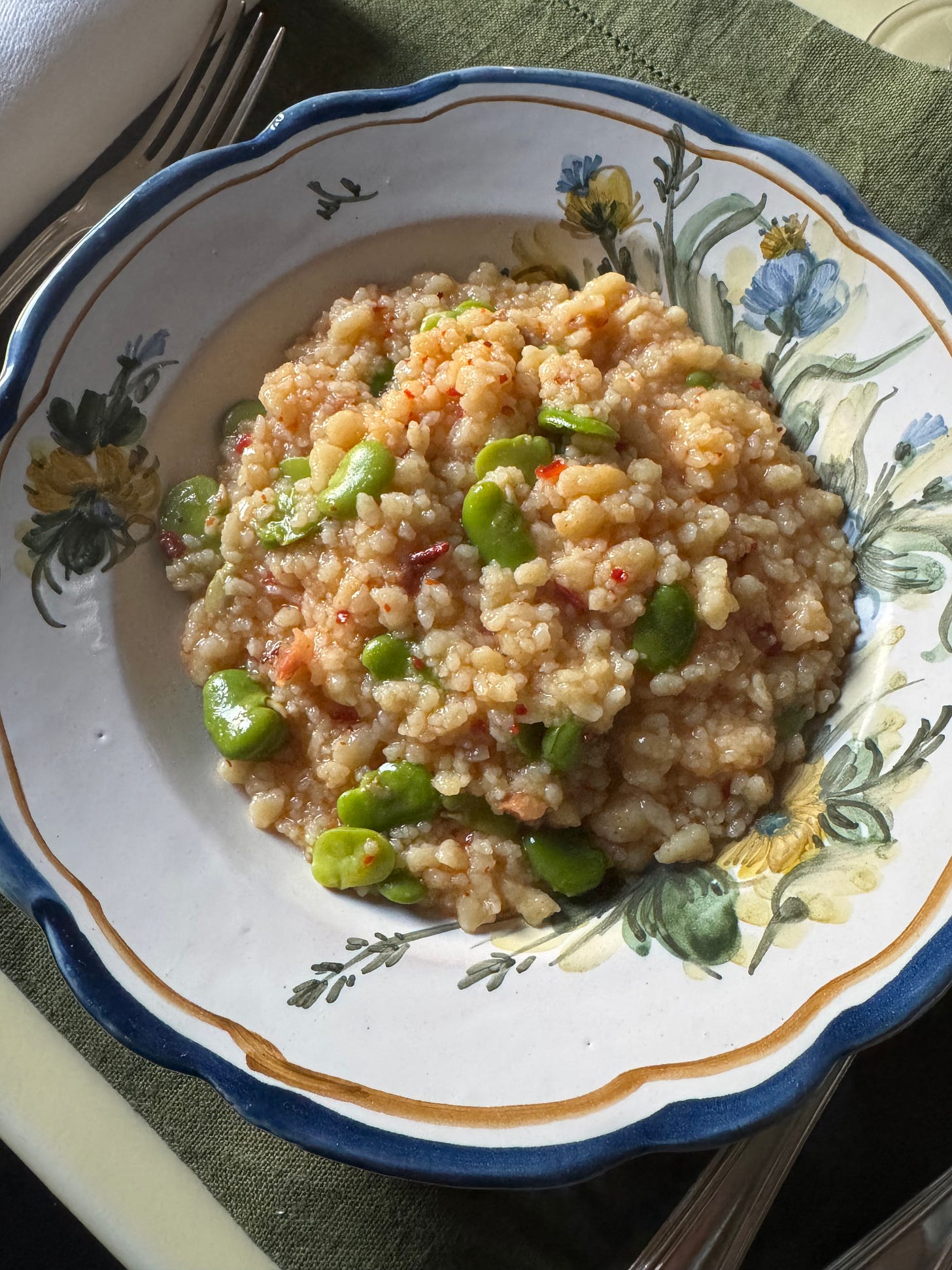 Intanto, sui carboni del focolare mise il treppiedi, ci poggiò un tegame di coccio, e lì versò l’olio, e poi la cipolla fresca, qualche pezzetto di guanciale; poi le fave fresche, peperoncino piccante, e tanto, tanto peperone dolce essiccato e tritato. Il calore poi compì la magia, il profumo - me lo ricordo bene - mi colpì e mi catturò, lo ricordo come fosse ieri.