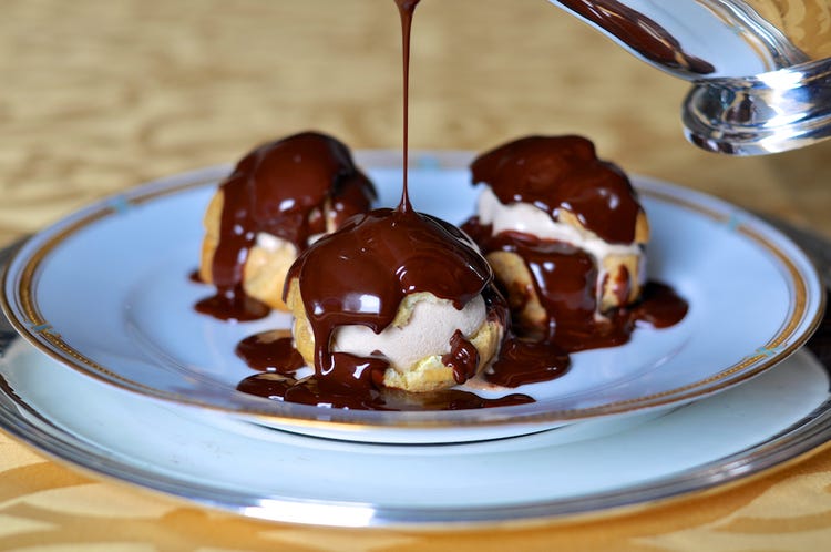 Voglio una salsa fluida per il gelato? 160 ml di panna e 80 g di cioccolato fondente.