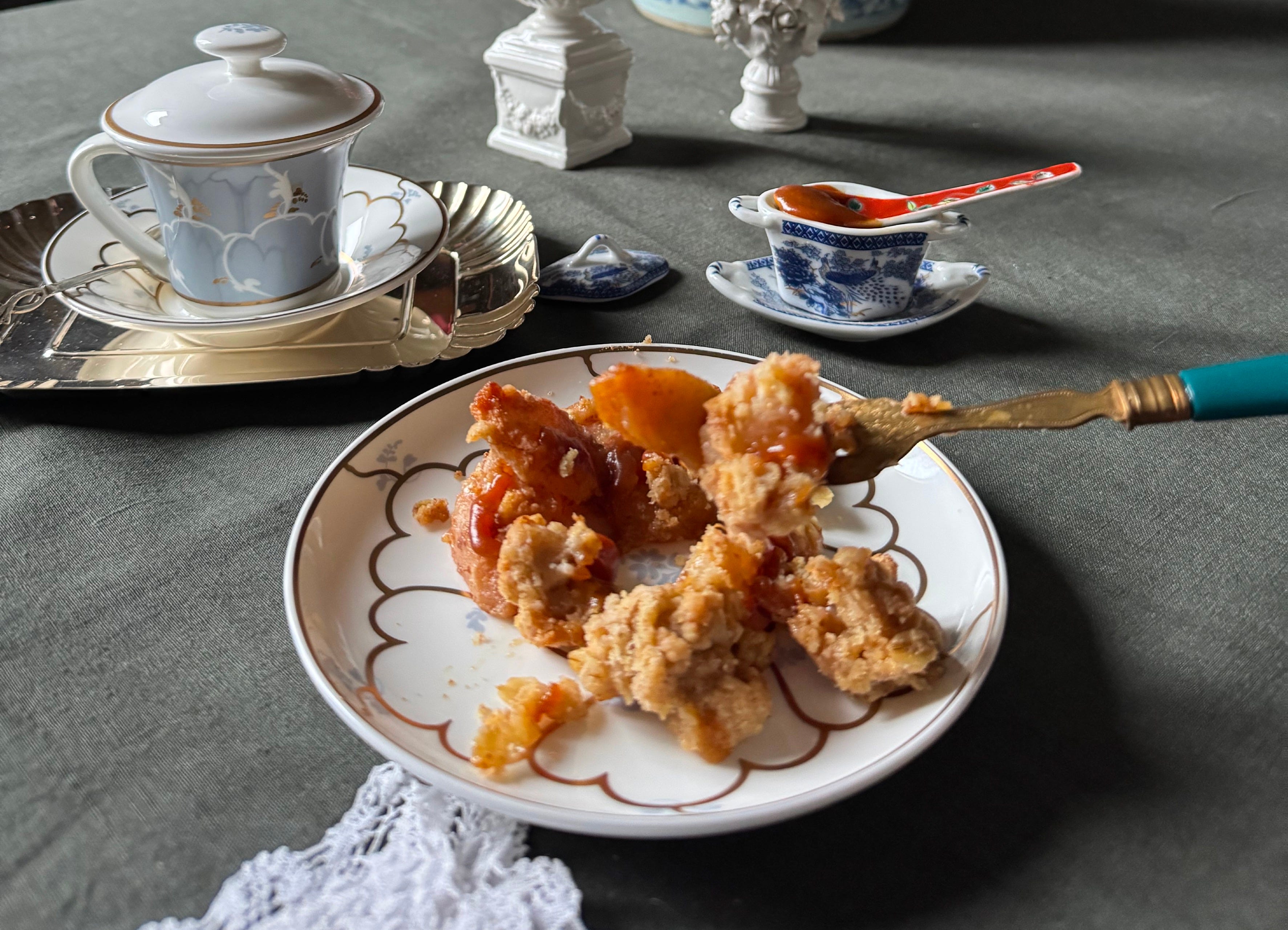 Briciole dei pasta frolla: si preparano in anticipo, con o senza avena. All’occorrenza, basta preparare della frutta (mele, pere) aggiungere anche della frutta essiccata e secca. Condire con poco zucchero, del succo di limone, qualche spezia (tutto a piacimento) disporre in una teglia da forno. Spargere le briciole ancora congelate, cuocere in forno circa 40 minuti fino a quando si sarà formata una crosta dorata