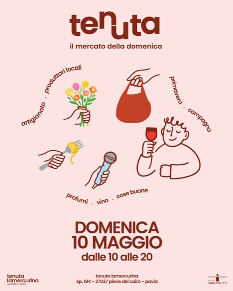 Ti segnalo che il 10 maggio ci sarà la 4° edizione di “tenuta il mercato della domenica”. Un’evento promosso dalla Fondazione Darefrutto.