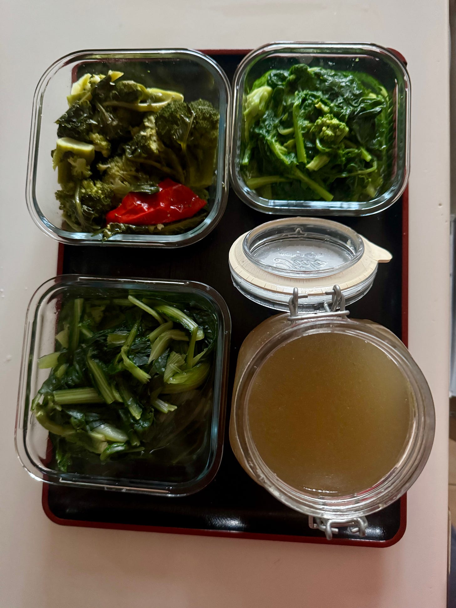 Portata a tavola la soup, ho aggiunto delle cime di rapa, precedentemente sbollentate e ripassate in padella con aglio e olio.
