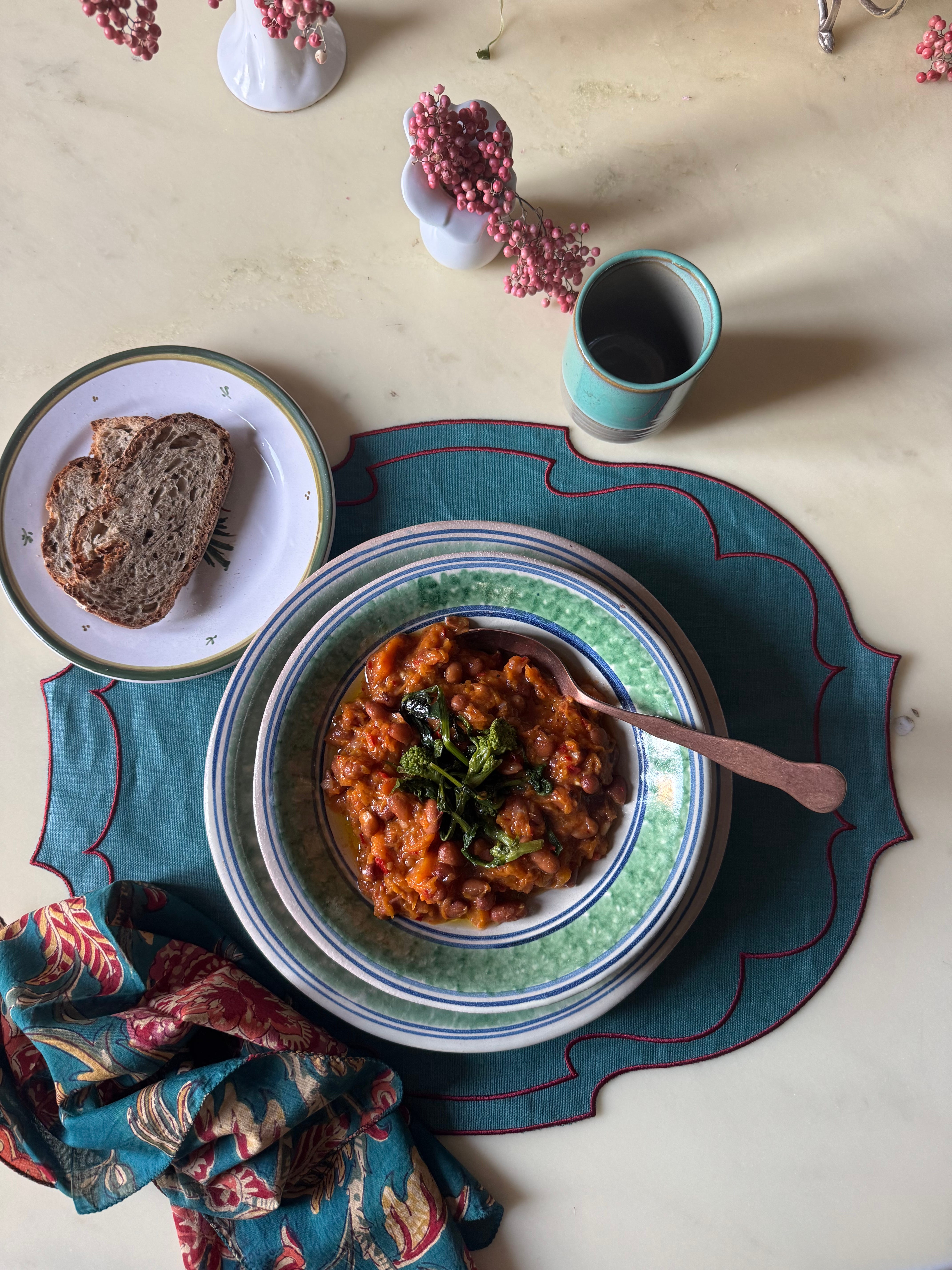 Cominciamo con la soup di zucca con fagioli e cime di rapa.